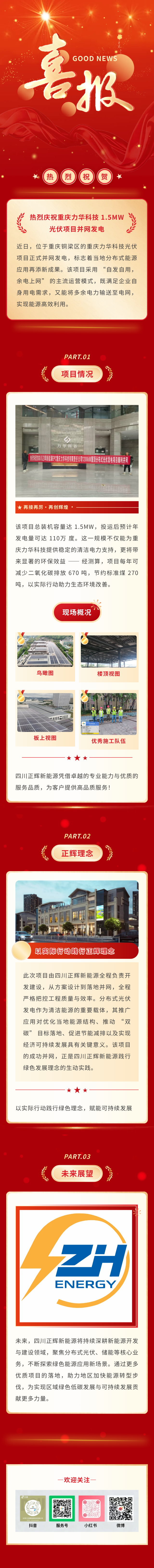 1.5MW光伏項(xiàng)目在重慶力華科技并網(wǎng)發(fā)電,正輝再添綠色新動(dòng)能